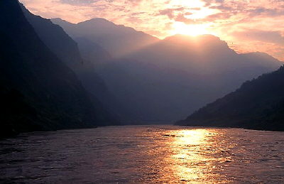 One of the famous 3 Gorges of the Yang Tse river. Maybe the last chance to take this photo: the new dam will change the water level of the river considerably.